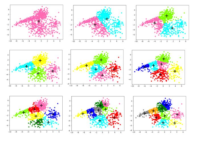 2、按照 8:2 的比例随机将数据划分为训练集和测试集,至少尝试 3 个不同的 K 值,并画出不同 K 下 的聚类结果,及不同模型在训练集和测试集上的损失。对结果进行讨论,发现能解释数据的最好的 K 值。二、算法原理