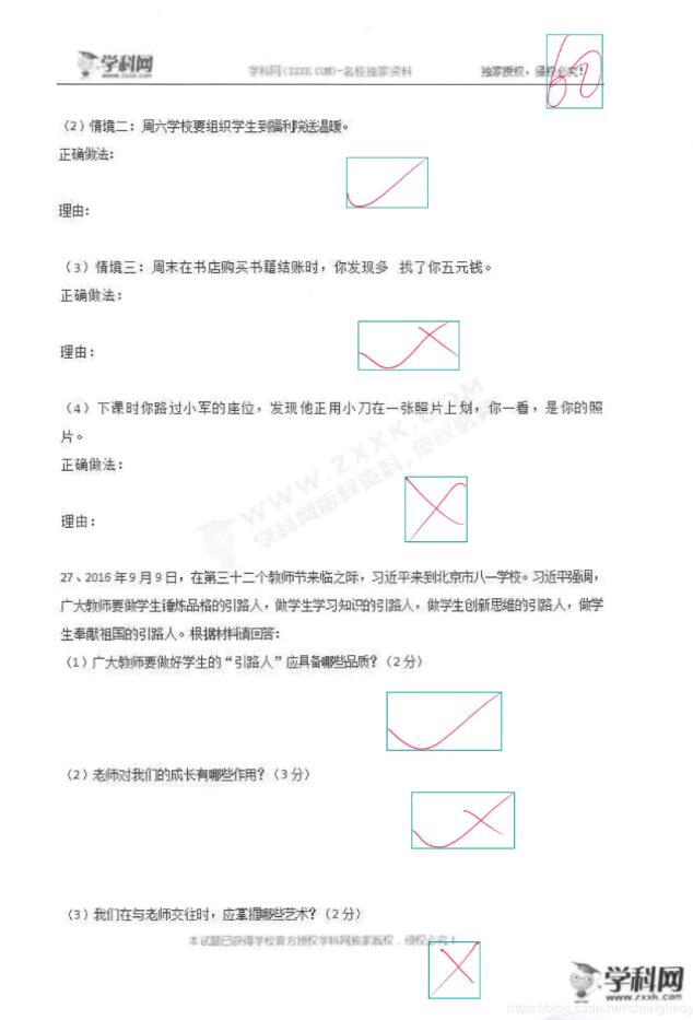 效果如图,一试卷红色批改字样为例: