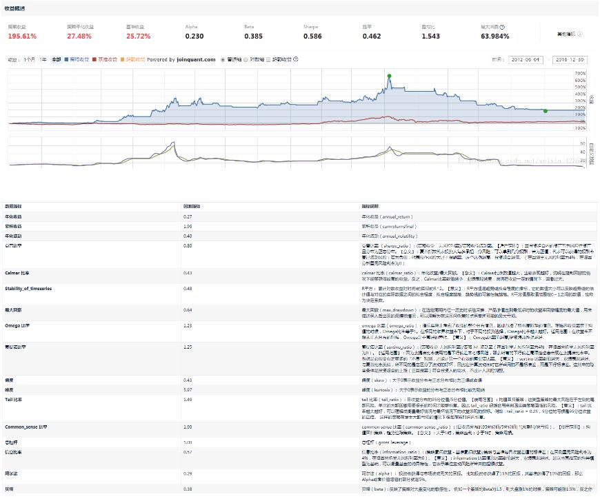 #整体结果在12-16年回测测试结果效益不错,阿尔法贝塔最大回撤也还行,难点是在策略和框架的使用和调用,这就是这次的双均线策略记录