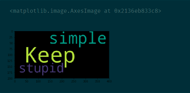 text = 'Keep it simple and stupid.' wc = WordCloud() # 实例化词云图对象 wc.generate(text) # 根据文本生成词云图 plt.imshow(wc) # 显示词云图