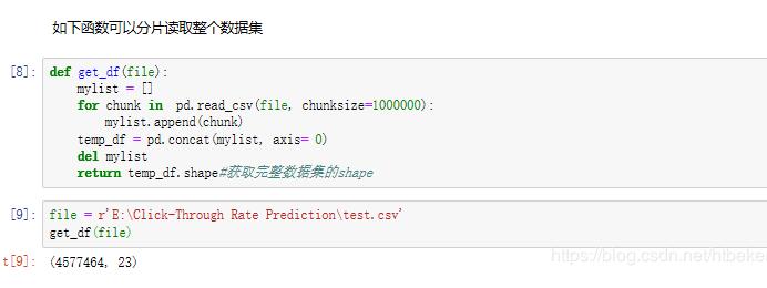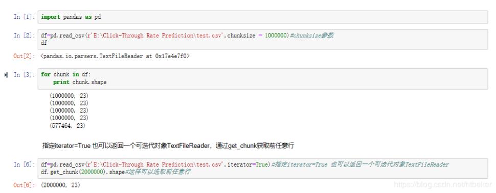 看到train了吧,原始数据集6个G,特征工程后得多大?那我就取400w出来train。为了节省时间和完整介绍分批读入数据的功能,这里以test数据集为例演示。其实就是使用pandas读取数据集时加入参数chunksize。