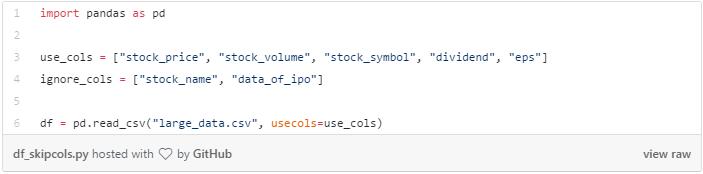 读取数据前, 先跳过这些无用的列,可以帮我们节省很多内存。 Pandas 可以允许我们选择想要读取的列。