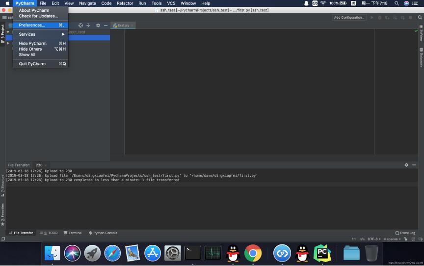 这边我用的是mac的pycharm,windows的用户操作是大同小异的。