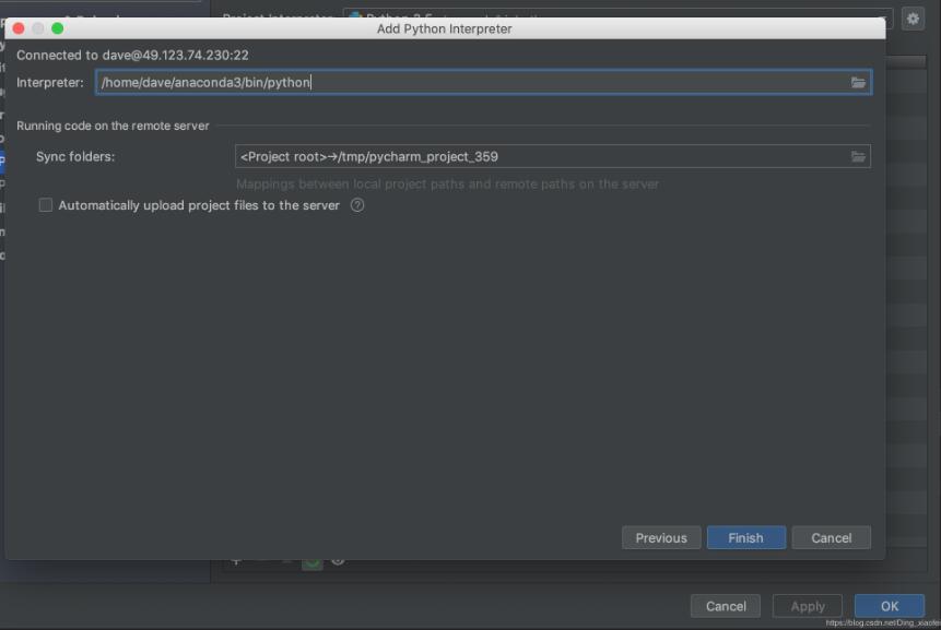 完成所有操作,最后一张图我没有勾选自动同步,当然你如果勾选了,本地代码和服务器代码就会自动同步,不需要你手动地去上传。当然当你有大量数据在本地的时候,自动同步是一个很好时的操作。还不如手动同步。手动同步就是如上图的upload to 230。