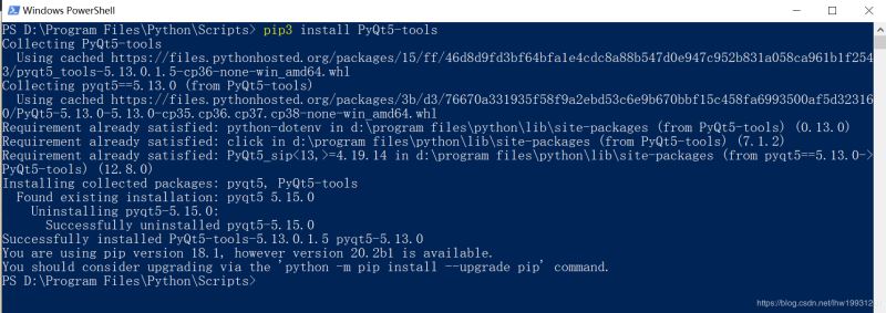 如上安装完成这个之后,继续输入 pip3 install PyQt5-tools