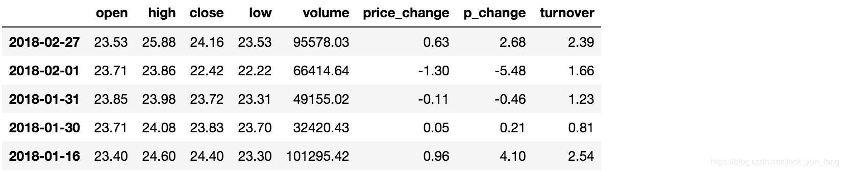 data['open'].add(1) 2018-02-27 24.53 2018-02-26 23.80 2018-02-23 23.88 2018-02-22 23.25 2018-02-14 22.49