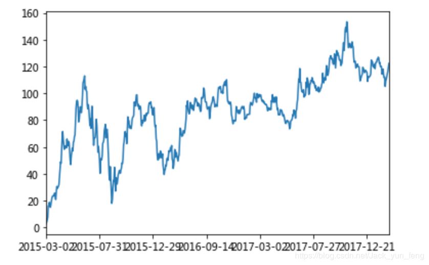 stock_rise = data['p_change'] # plot方法集成了前面直方图、条形图、饼图、折线图 stock_rise.cumsum() 2015-03-02 2.62 2015-03-03 4.06 2015-03-04 5.63 2015-03-05 7.65 2015-03-06 16.16 2015-03-09 16.37 2015-03-10 18.75 2015-03-11 16.36 2015-03-12 15.03 2015-03-13 17.58 2015-03-16 20.34 2015-03-17 22.42 2015-03-18 23.28 2015-03-19 23.74 2015-03-20 23.48 2015-03-23 23.74