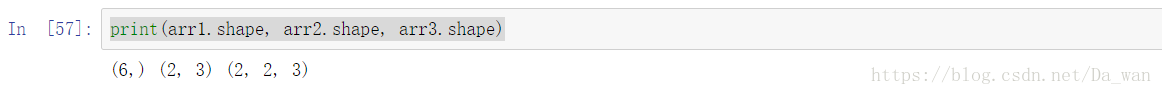 对于一维数组:有疑问的是为什么不是(1,6),因为arr1.ndim维度为1,元组内只返回一个数。