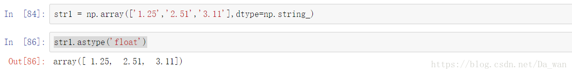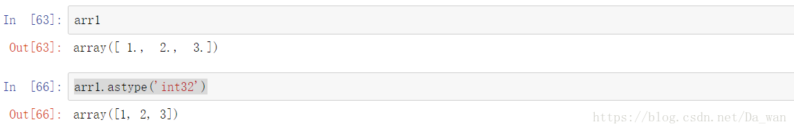 注意其中的float,它是python内置的类型,但是Numpy可以使用。Numpy会将Python类型映射到等价的dtype上。