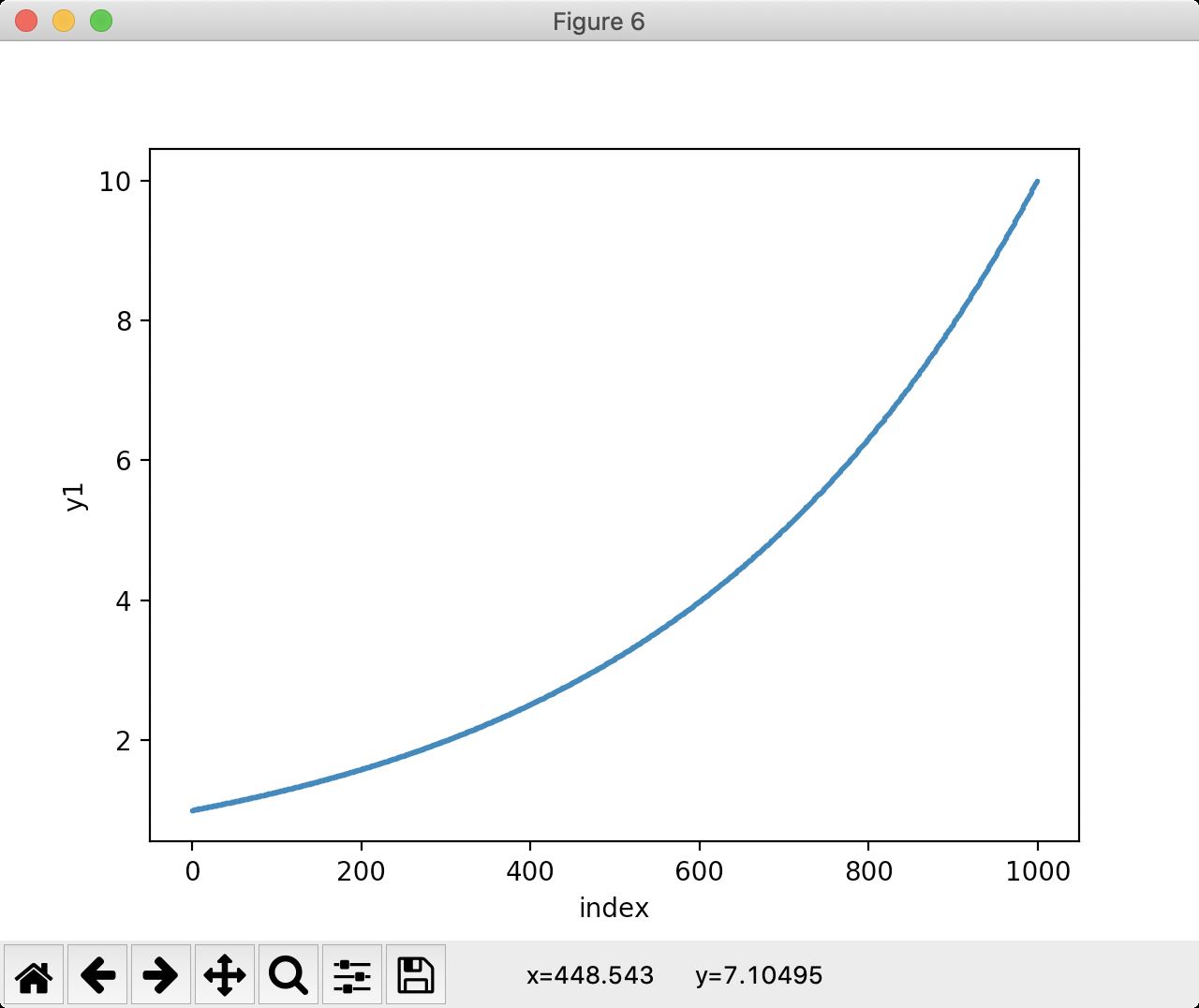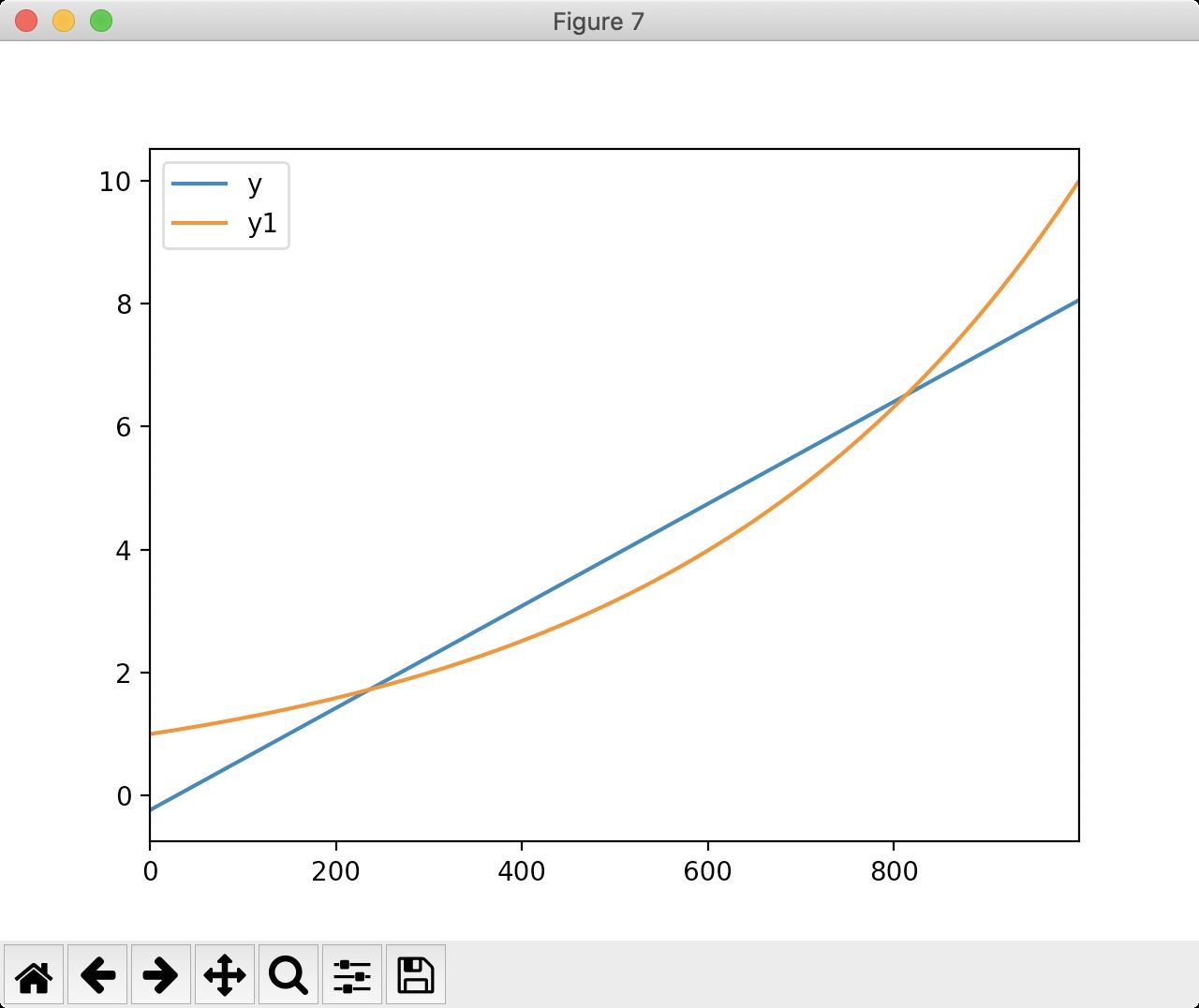 df['y'] = df['index'].apply(lambda x: x * m + c) df[['y', 'y1']].plot() plt.show()