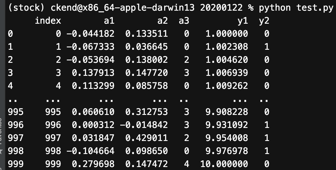 使用pandas可以很方便地进行数据创建,现在让我们创建一个5列1000行的pandas DataFrame: