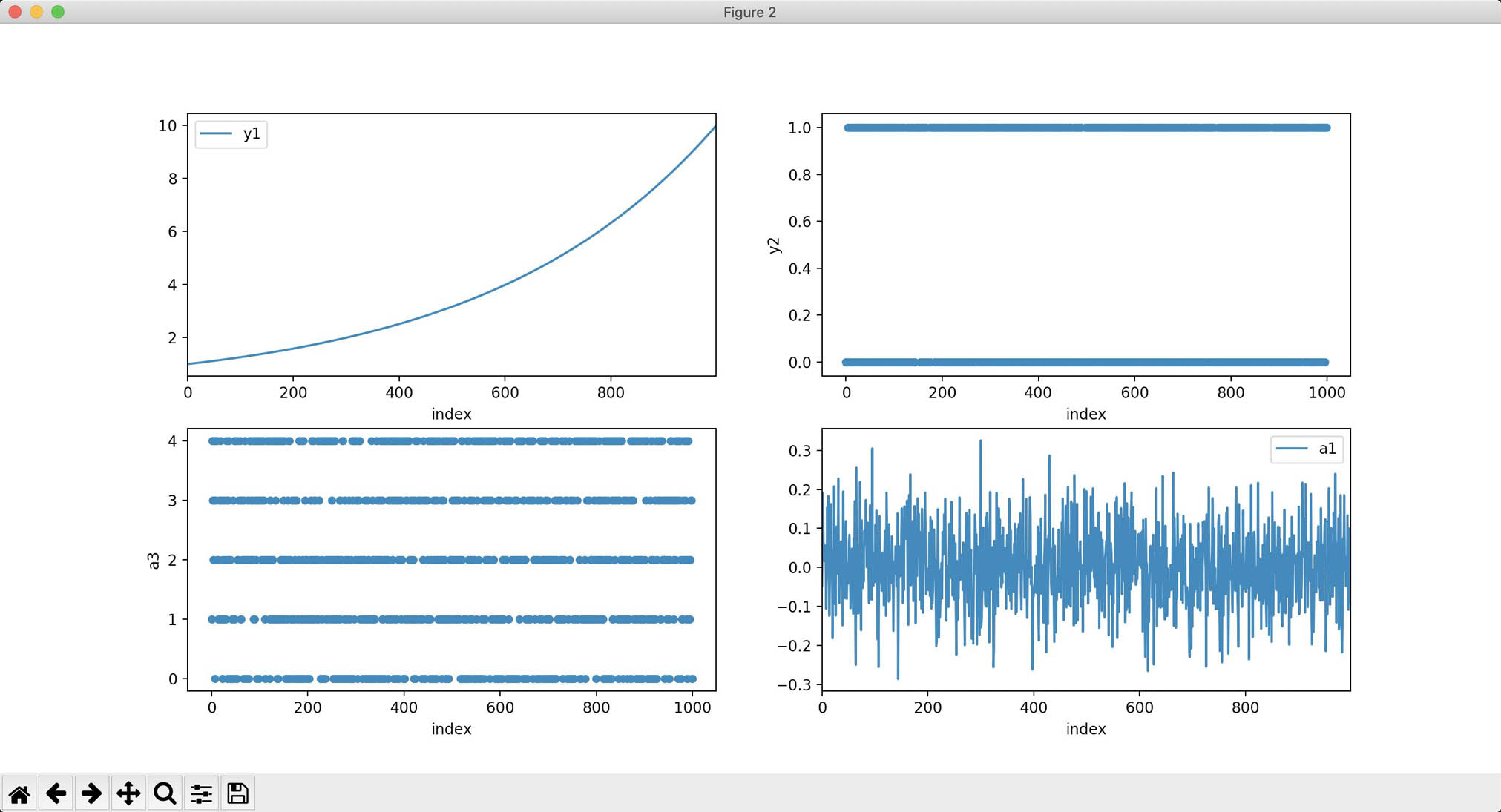df[['a1', 'a2']].plot(by=df.y2, subplots=True) plt.show()