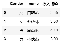 #不以组标签为索引,通过 as_index 来实现 df_expenditure_mean = df.groupby(['Gender', 'name'], as_index=False).mean()
