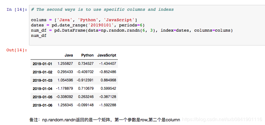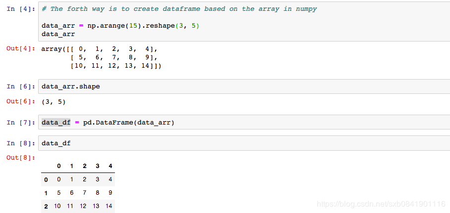 第五种: 用numpy中的array,但是行和列名都是从numpy数据中来的