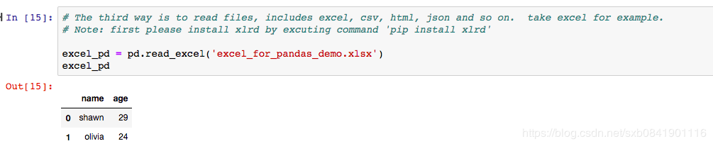 本文例子就用excel, 上篇博客笔者已经用csv举例了。这里要注意,如果用excel请先安装xlrd这个包