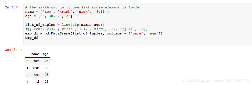 笔者在学习pandas,在学习过程中总结了一下创建dataframe的方法,通过查阅资料总结遗下几种方法,如果你有其他的方法欢迎留言补充。