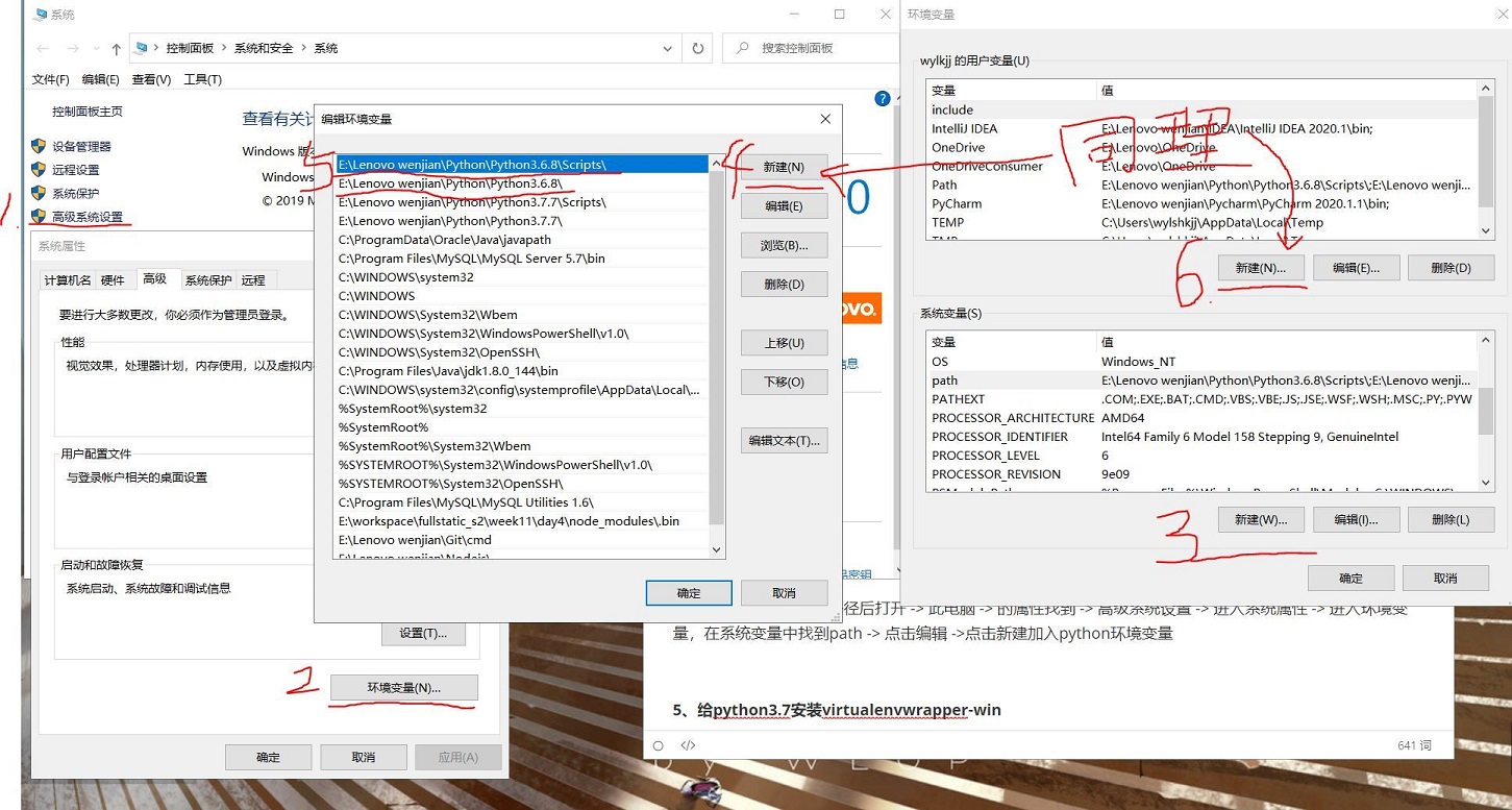 注:创建不同解释器的虚拟环境时,要切换默认解释器状态;比如我想创建一个python3.6的虚拟环境,我需要先去找到系统的环境变量和用户变量把puthon3.6的环境变量放到其它python解释器版本的环境变量的上面,使cmd中 执行命令:python --version 显示的版本变成python 3.6;同理,重复上面的操作可实现不同python解释器版间的切换