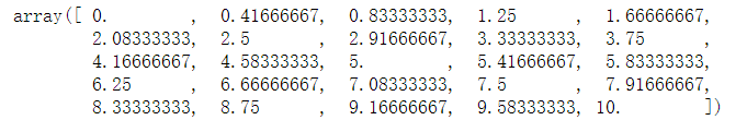 linspace(0, 10, 25)