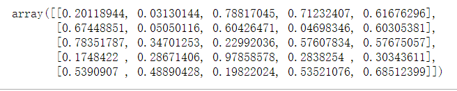 #区间[0,1]内的均匀分布数。 random.rand(5,5)