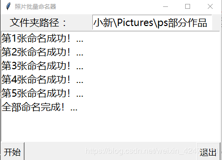 button = Button(root, text="开始", font=("微软雅黑", 13),command=rename)
