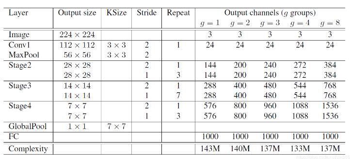 注意,对于第二阶段(Stage2),作者没有在第一个1×1卷积上应用组卷积,因为输入通道的数量相对较少。
