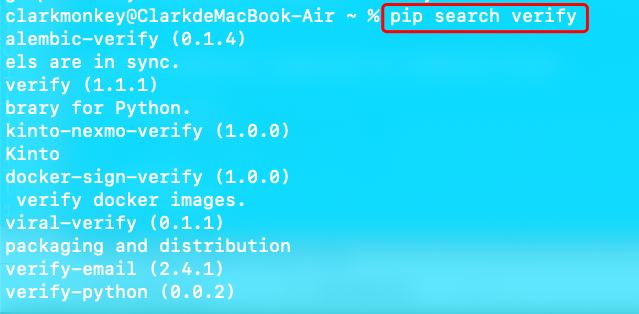 pip search [keys] # pip search verify