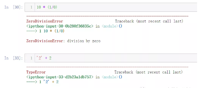 可以看到,异常有不同的类型,发生异常后,其类型名称会被打印出来。上述这些都是python内置的异常,用户也可以自定义异常,这里不做赘述。