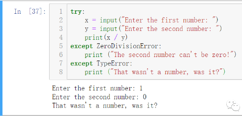 这里就需要多个except子句来帮忙了,举个例子: