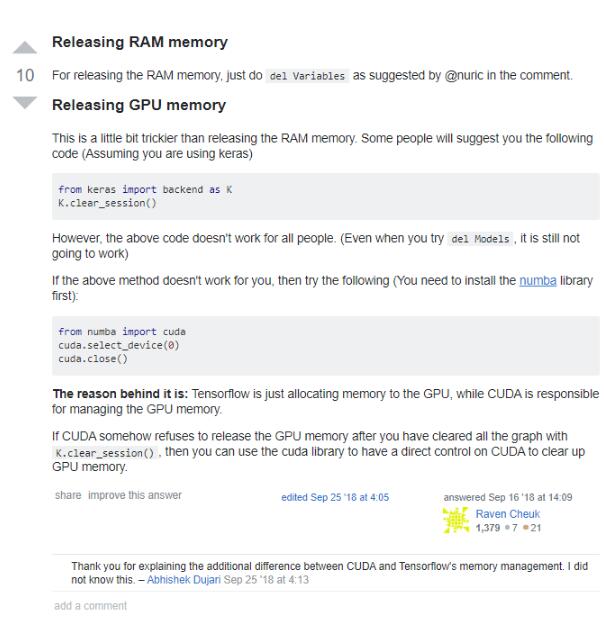 K.clear_session() # 方法一:如果不关闭,则会一直占用显存 cuda.select_device(1) # 方法二:选择GPU1 cuda.close() #关闭选择的GPU