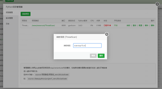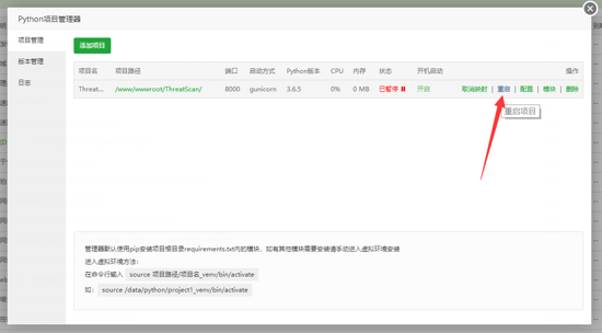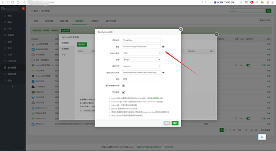 在宝塔在线面板安装“ python项目管理器 ”