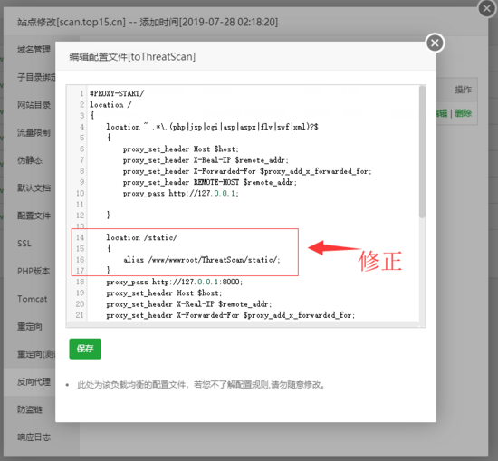 alias /www/wwwroot/ThreatScan/static/;