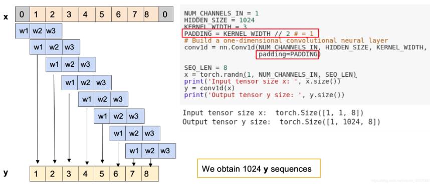 下面两图为演示conv1d,在padding和不padding下的输出特征图大小