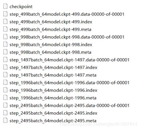 在一个文件夹中,会有一个checkpoint文件,以及一系列不同训练阶段的模型文件,如下图