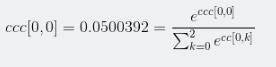 ccc[0,0]实际上表示这样一种概率: P( label = 0 | value = [-1.30022268 0.59127472 1.21384177] = c[0]) = 0.0500392