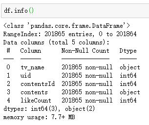 datas = pd.DataFrame(columns=[uid,contentsId,contents,likeCount])