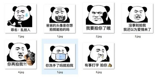 1、首先我们准备一些表情图,这里我选了沙雕熊猫头