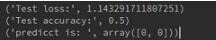 可以看到训练时输出的日志。因为是随机数据,没有意义,这里训练的结果不必计较,只是练习而已。