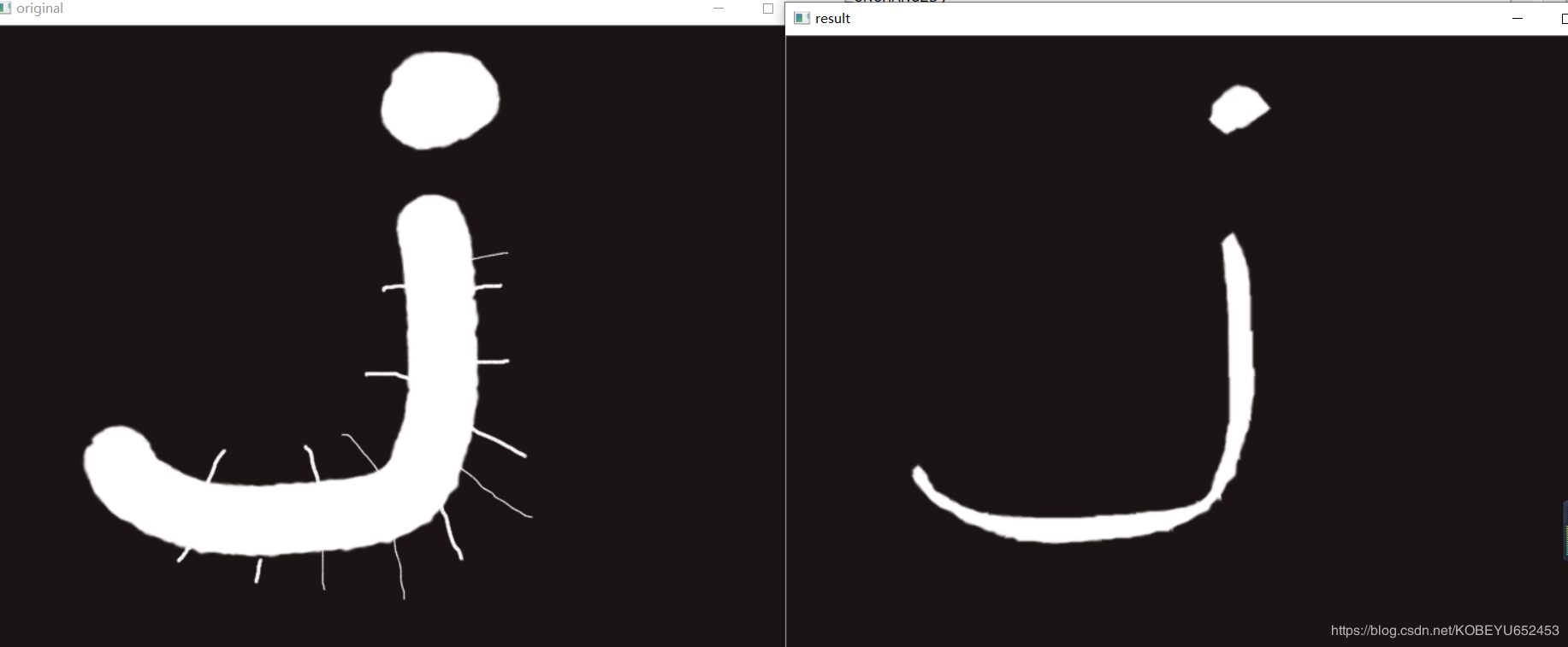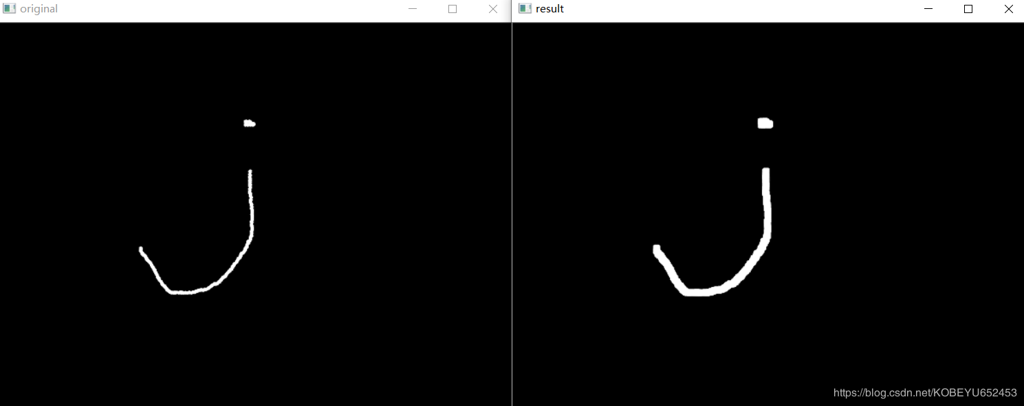 对腐蚀过的图像,进行膨胀处理,可以去除噪声,并保持原样形状。