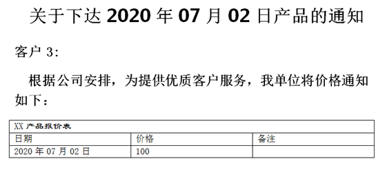 run3 = p3.add_run(" 根据公司安排,为提供优质客户服务,我单位将价格通知如下:" )