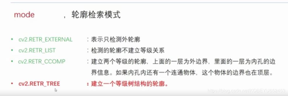 contours,hierarchy=cv2.findContours(image,mode,method)