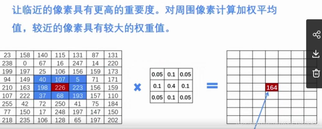 如图:如果我们想对红色点进行处理,则它新值等于周围N乘N个像素点的平均(包括自身)