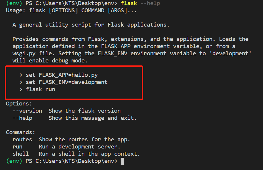 可以看到命令提示符前面已经出现了虚拟环境的名称(env)