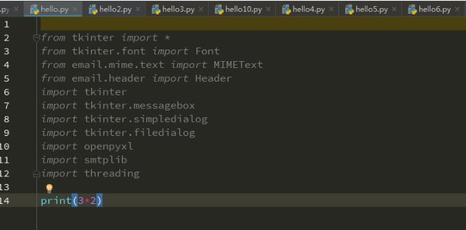 from tkinter import * from tkinter.font import Font from email.mime.text import MIMEText from email.header import Header import tkinter import tkinter.messagebox import tkinter.simpledialog import tkinter.filedialog import openpyxl import smtplib import threading print(3*2)