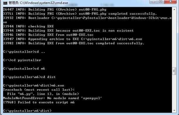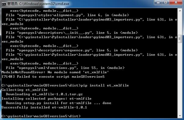 执行后,发现打包可以,但是程序运行错误,提示“缺少openpyxl”。。错误找到了