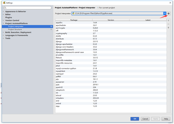 File -> Settings -> Project:xxx(具体项目) -> Project Interpreter