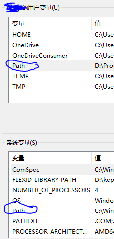 将以上地址拷贝后加入环境变量中。注意windows10中环境变量分为系统环境变量和用户环境变量,要看你的visual studio的环境变量是在哪一个里面。为了安全起见,建议都加上,如下图: