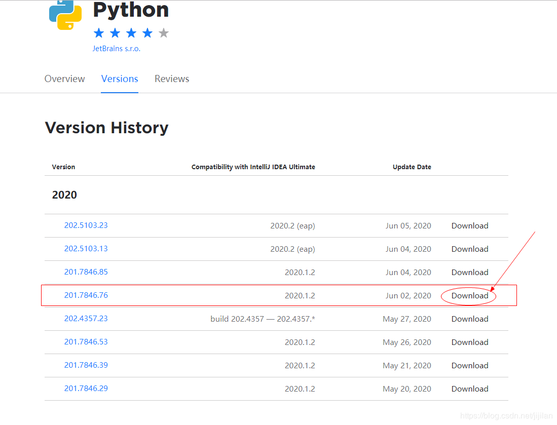 https://plugins.jetbrains.com/plugin/631-python/versions