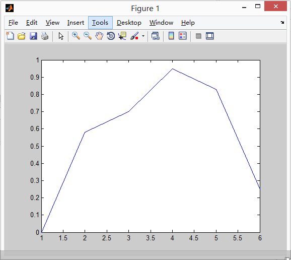 >> y=[0 0.58 0.70 0.95 0.83 0.25]; >> plot(y)