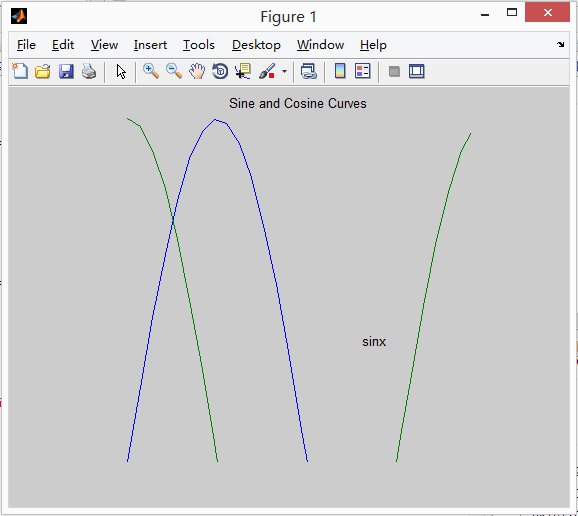 表示在坐标x=2.5, y=0.7处加上字符串sinx。更方便的是用鼠标来确定字符串的位置,方法是输入命令: