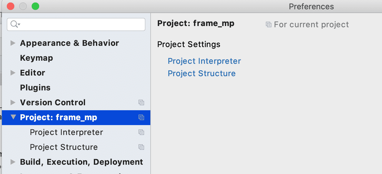 2. 在打开的页面中,选择project选项,project后面的名字就是打开的当前项目名,如下图所示